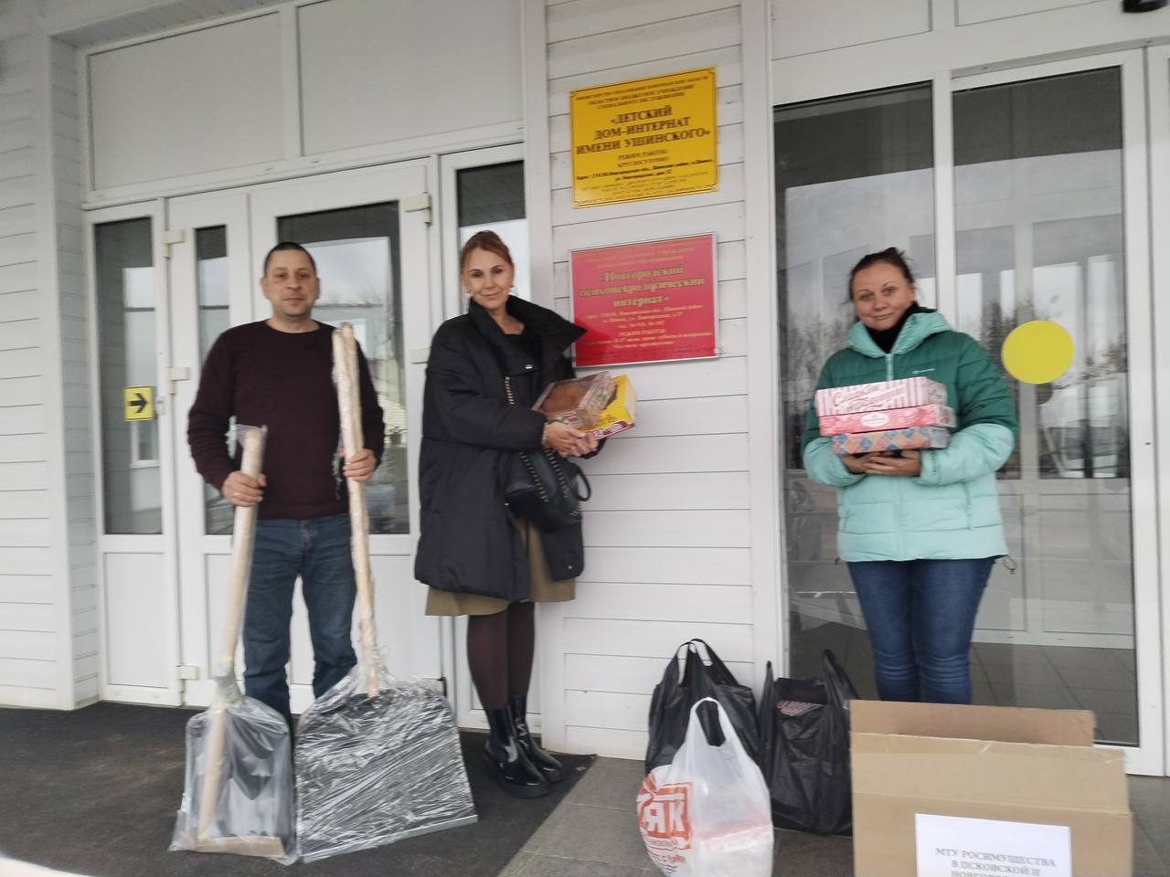 МТУ Росимущества в Псковской и Новгородской областях посетило областное автономное учреждение социального обслуживания «Новгородский дом социального обслуживания». Сотрудники передали организации сладкие угощения для воспитанников, лопаты для уборки снега, а также горшки для цветов.