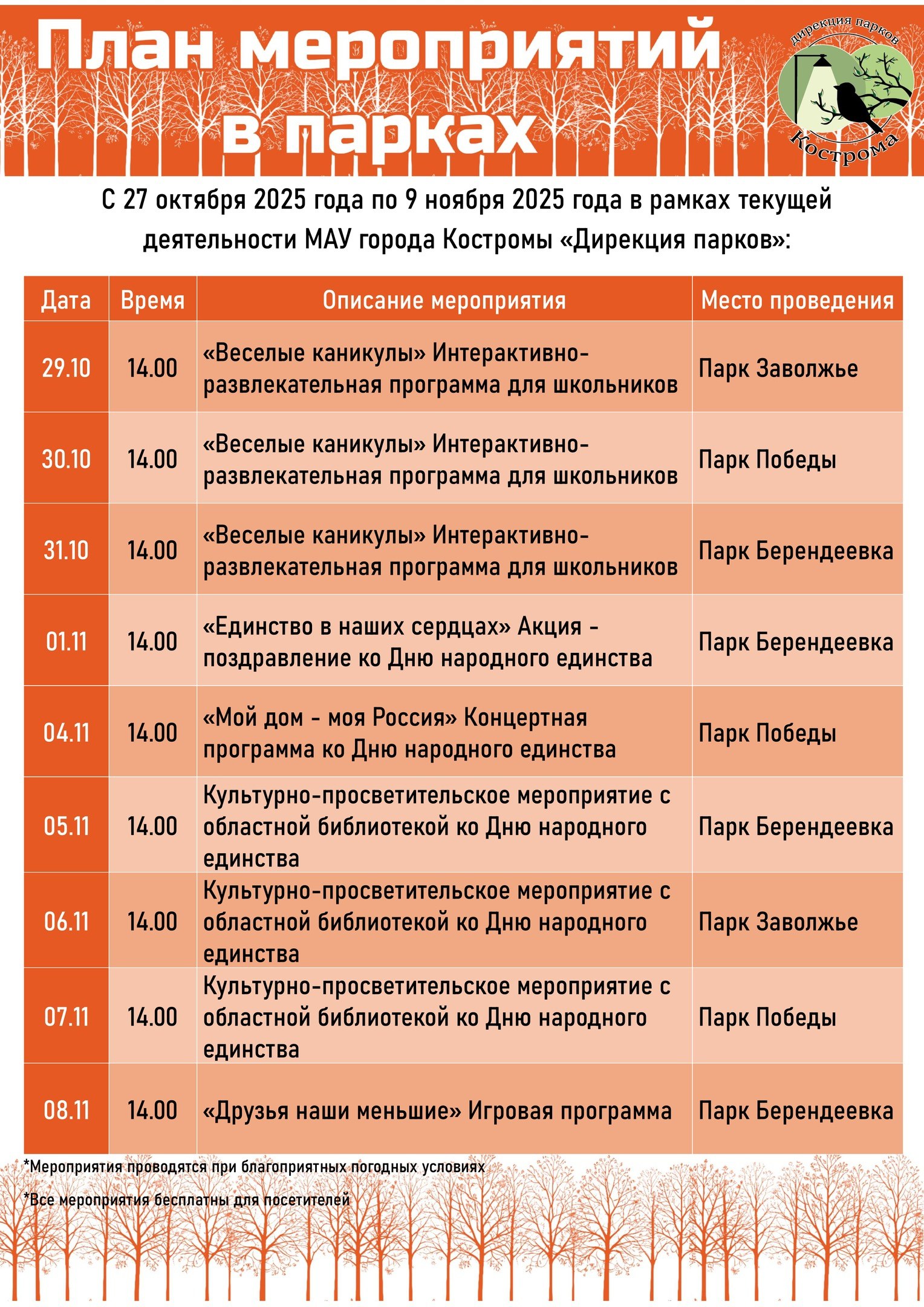 «Дирекция парков» организует для костромичей и гостей города культурные и развлекательные программы.