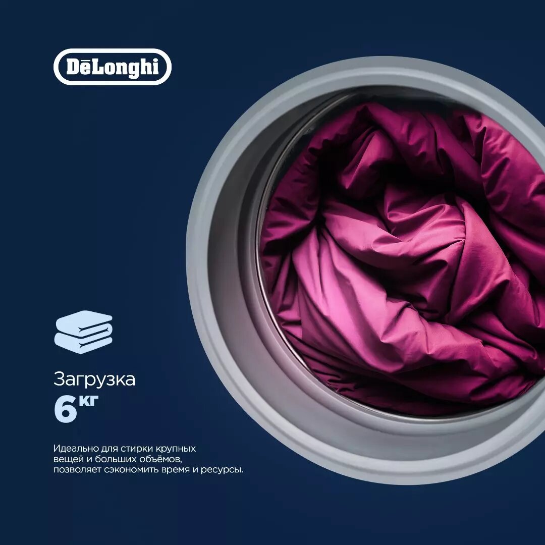 Стиральные машины DeLonghi с загрузкой 6 кг — это оптимальное сочетание компактности и функциональности, с возможностью обеспечивать бережную стирку для различных типов тканей. Они идеально подходят для ежедневной стирки, не занимая много места и предлагая все необходимые функции.
