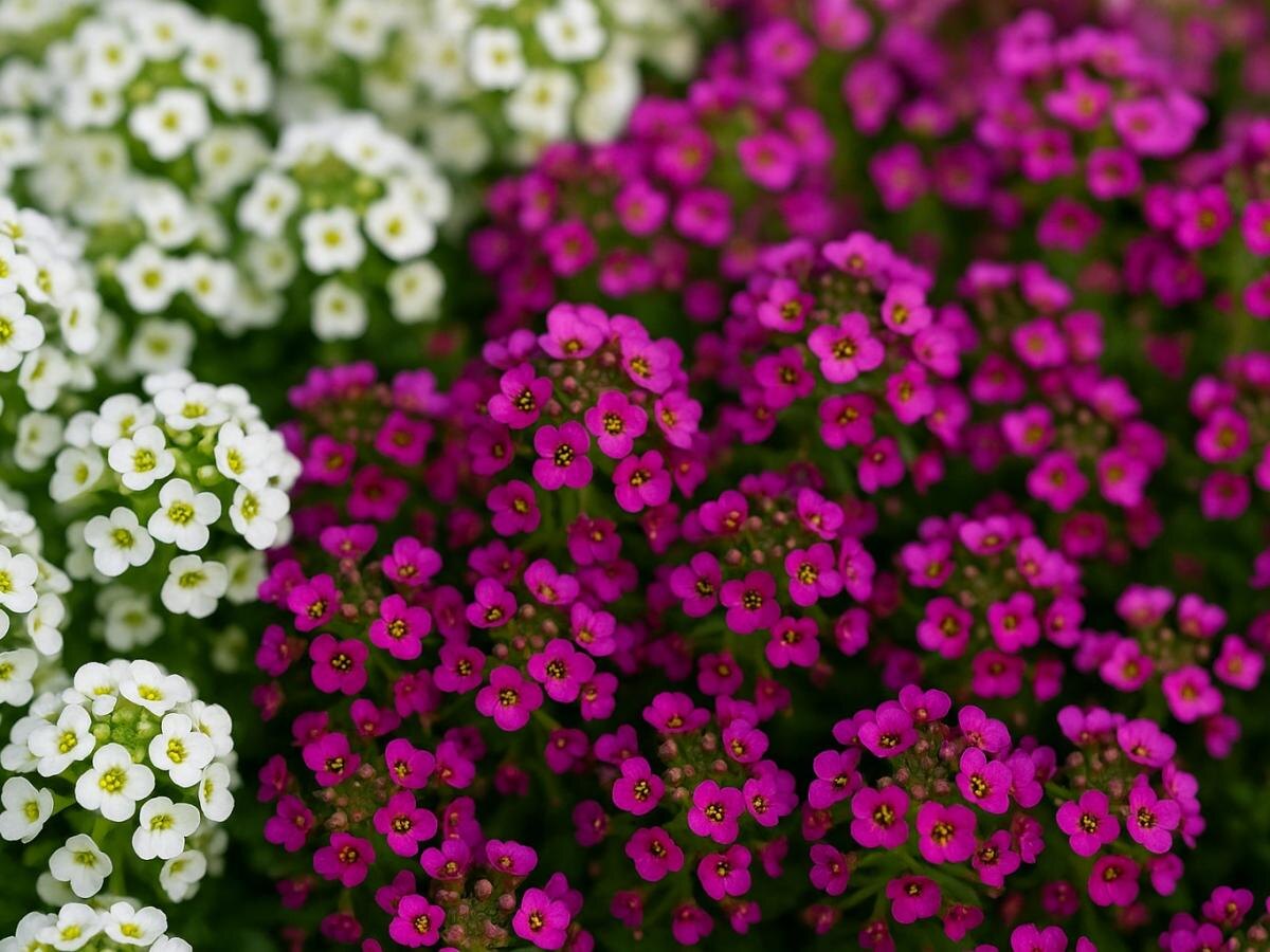 - Алиссум: Обладает сладким медовым ароматом и цветёт с мая до поздней осени. Этот «бурячок» прекрасно чувствует себя как в бордюрах, так и подвесных кашпо.