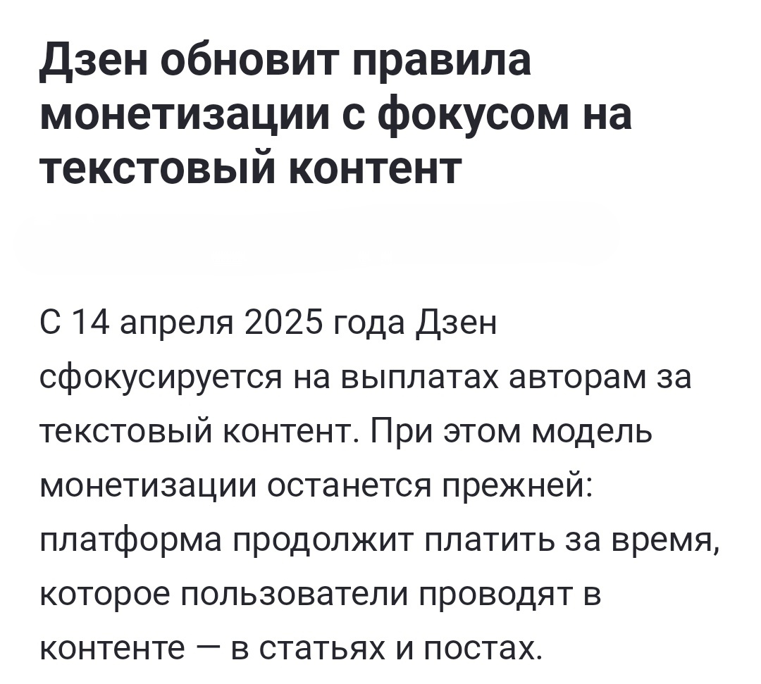 Платформа Яндекс.Дзен вновь пересмотрела свои правила монетизации, и эти изменения уже вызвали недовольство у авторов контента. Теперь, начиная с 14 апреля, Дзен предоставляет возможность заработка только на текстах и постах, ограничив выплату за видео. Многие авторы, ранее активно публиковавшие видео, теперь сталкиваются с проблемой отсутствия дохода от распространённых материалов, пишет Дзен-канал "ОБО ВСЕМ понемногу ??ПИУ от Наташи Довгель ??".