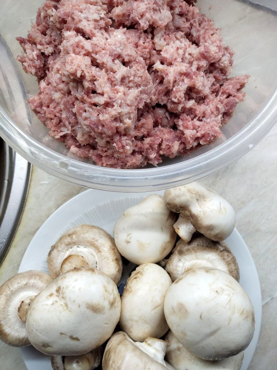 Пока манка набухает, не забывайте о грибах! Ножки срезаются и крупно шинкуются, добавляя их к фаршу. Такой подход гарантирует, что мясо не будет слишком плотным, а получится легким и воздушным. Как только все ингредиенты смешаны, можно начинать формировать шляпки грибов, наполняя их приготовленной начинкой.