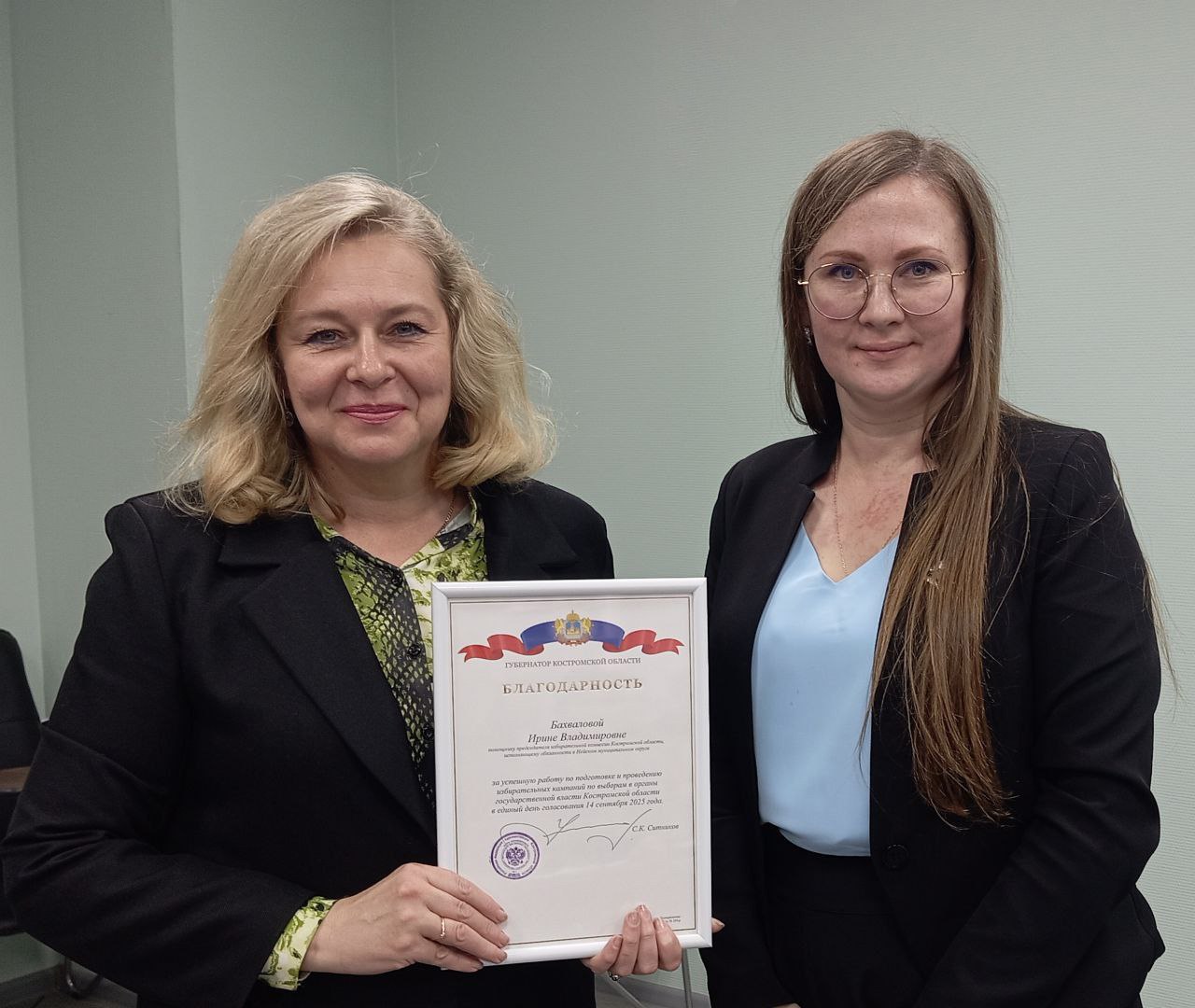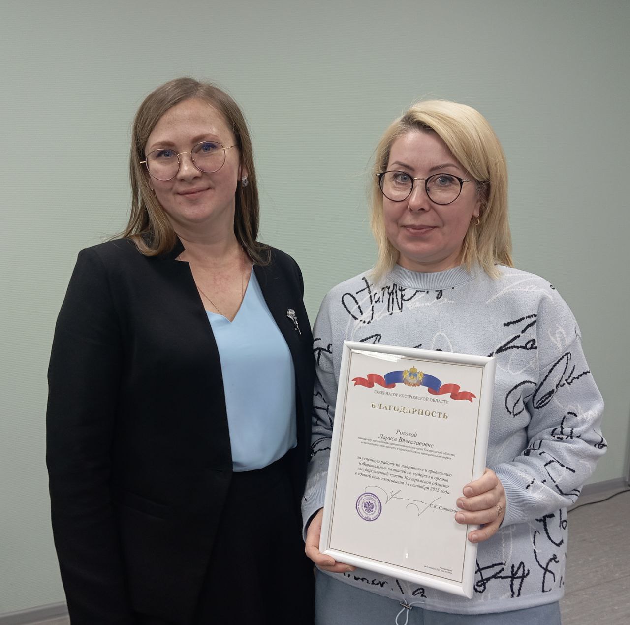 Высокую оценку губернатора Костромской области Сергея Ситникова получила работа наших коллег из территориальных избирательных комиссий по обеспечению избирательных прав граждан в период подготовки и проведения выборов в органы государственной власти в единый день голосования 14 сентября 2025 года.