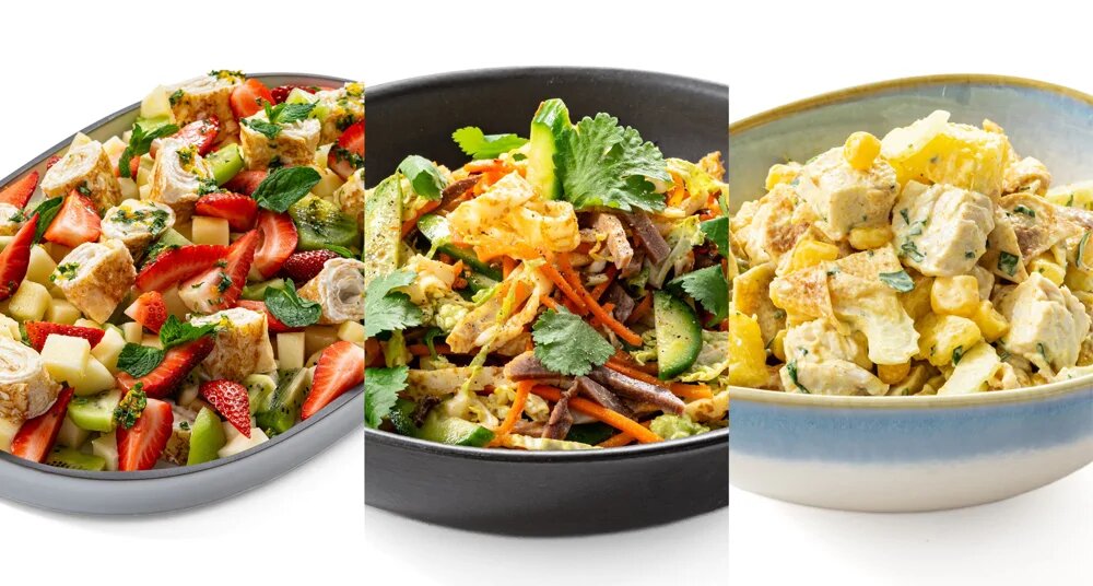 Если вам ближе более сытные блюда, стоит попробовать салат с блинами, индейкой и ананасом. Этот рецепт, имеющий корни в классической комбинации курицы с ананасом, добавляет нотку оригинальности благодаря острым специям и сельдерею, что придаст блюду легкость и свежесть. Использование майонеза сочетает в себе привычный вкус и интересное сочетание с зеленым карри, создавая невероятный букет вкусов.