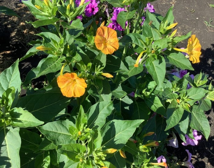 Поливайте растения, когда верхний слой почвы подсохнет, чаще в жару. Удобрения вносят дважды до цветения и при выращивании в контейнерах — каждые две недели. Вредители не представляют большой угрозы, но если возникают проблемы, следует действовать по мере необходимости. Мирабилис будет радовать своей красотой до первых заморозков, приковывая к себе внимание прохожих с яркими цветами и сладковатым ароматом.