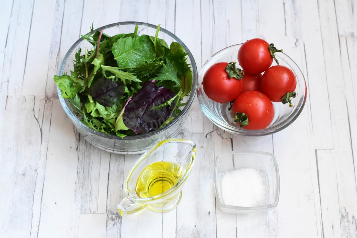 Готовые помидоры аккуратно выкладываются на заранее промытую сборную смесь салатных листьев. Полить все заправкой и подать к столу, слегка приправив солью. Это освежающее и легкое блюдо станет настоящей находкой для любителей ярких и насыщенных вкусов!