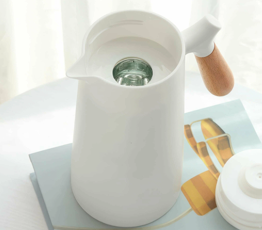 - Термос-кофейник: Этот элегантный аксессуар станет отличным дополнением к любой кухне или офисному пространству. Пластиковый корпус с деревянной ручкой и стеклянная колба внутри сохранят тепло любимого напитка, объемом 1 литр. Такой кофейник позволит радовать не только себя, но и гостей.