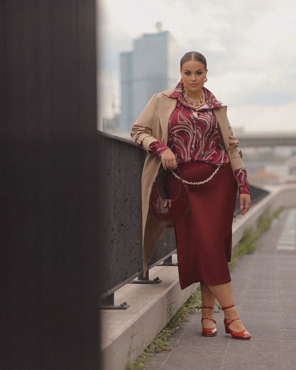 Стереотип о том, что черный цвет стройнит, остается в прошлом. Глубокие насыщенные оттенки, такие как бордо, изумруд и карамель, помогут визуально вытянуть силуэт. Главное — это избегать контрастов, которые дробят фигуру. И не стоит забывать об аксессуарах. Широкие пояса могут великолепно подчеркивать талию и добавлять законченный вид любому наряду.