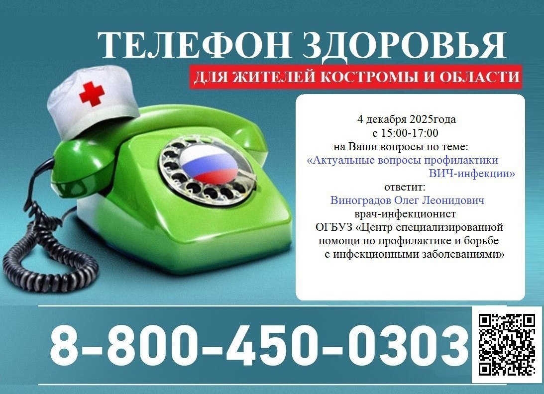 В ее рамках для жителей города и области 4 декабря будет организован «Телефон Здоровья». На вопросы костромичей по теме «Актуальные вопросы профилактики ВИЧ-инфекции» ответит врач-инфекционист ОГБУЗ «Центр специализированной помощи по профилактике и борьбе с инфекционными заболеваниями» Олег Виноградов.