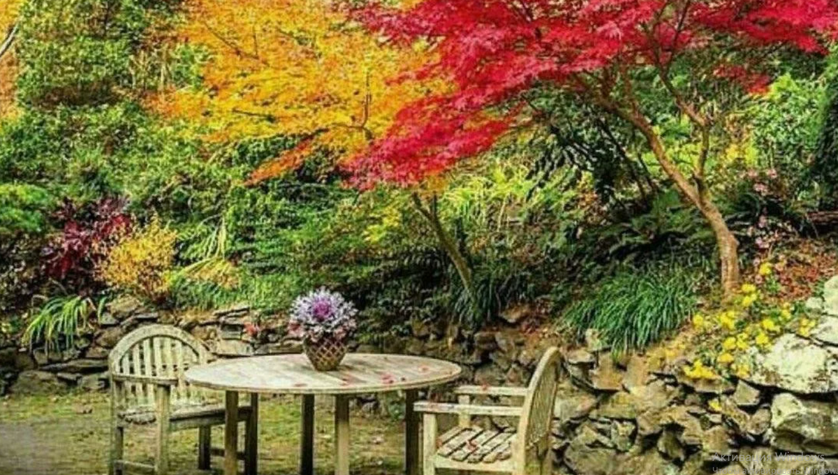 - Организуйте зоны для отдыха: Установите уютную скамью под деревом, добавьте плед и украшения из сухих цветов и тыкв. Это станет идеальным местом для чашки кофе в прохладный день.