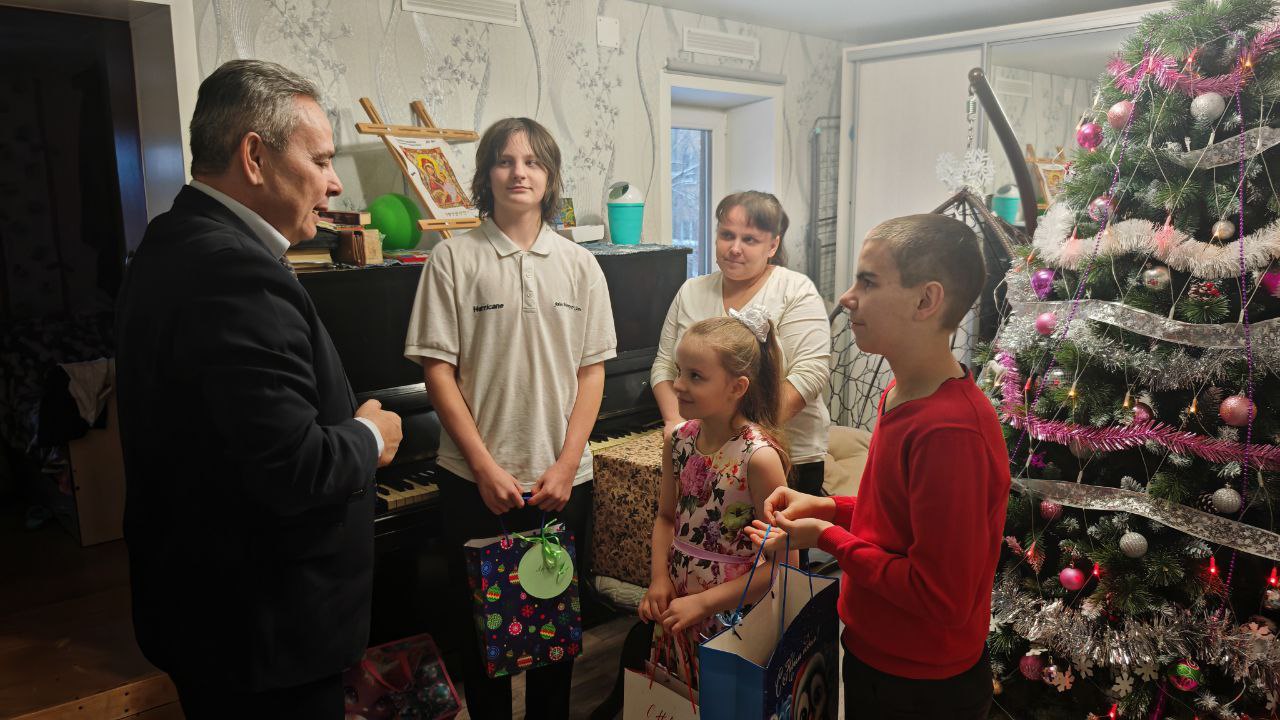 Поздравил семью с наступающим Новым годом, пожелал всем крепкого здоровья, сохранять дома тепло, любовь и уют. Дал наказ ребятам помогать маме, держаться всем вместе и быть друг за друга горой.