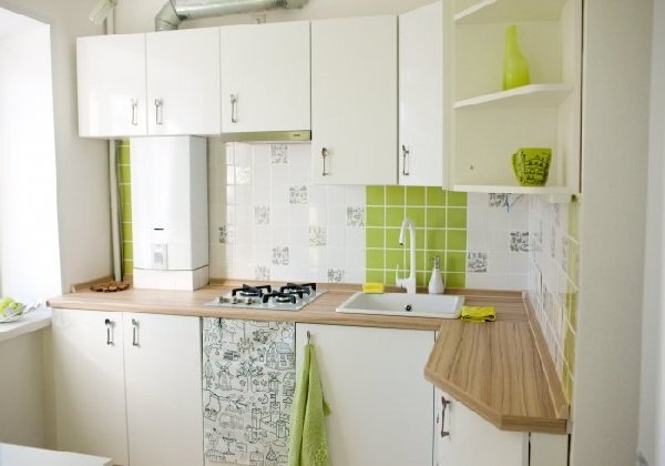 Важно помнить, что подойти к размещению колонки нужно с учетом всех норм пожарной безопасности. Вот несколько вариантов, как красиво интегрировать газовую колонку в кухонное пространство: