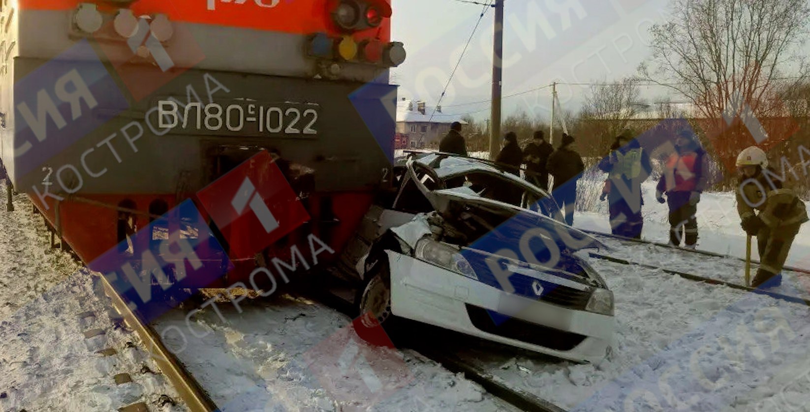 Автомобиль попал под локомотив на одном из костромских железнодорожных переездов