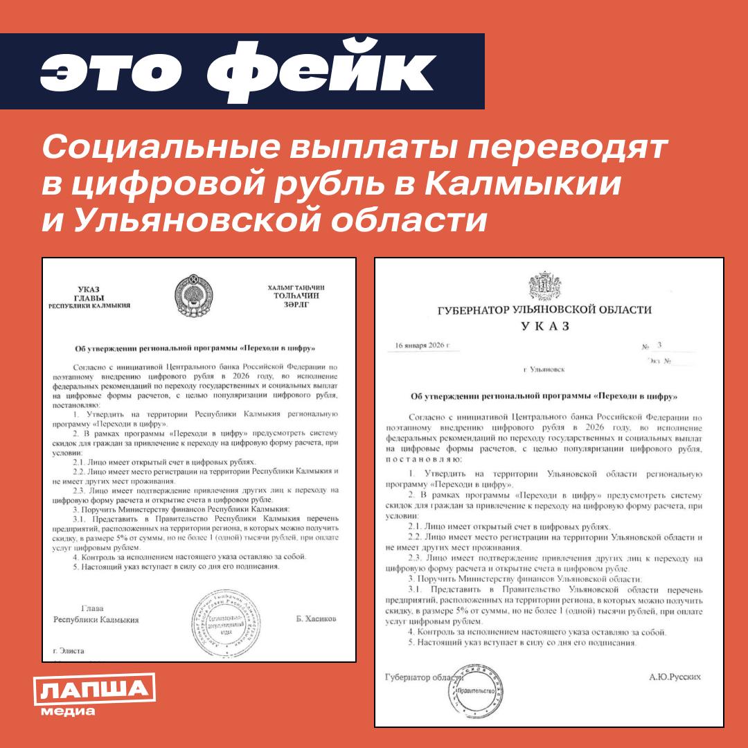 Переходить в «цифру» якобы предлагают в России. Документы о назначении социальных выплат в цифровом рубле появились в Калмыкии и Ульяновской области.
