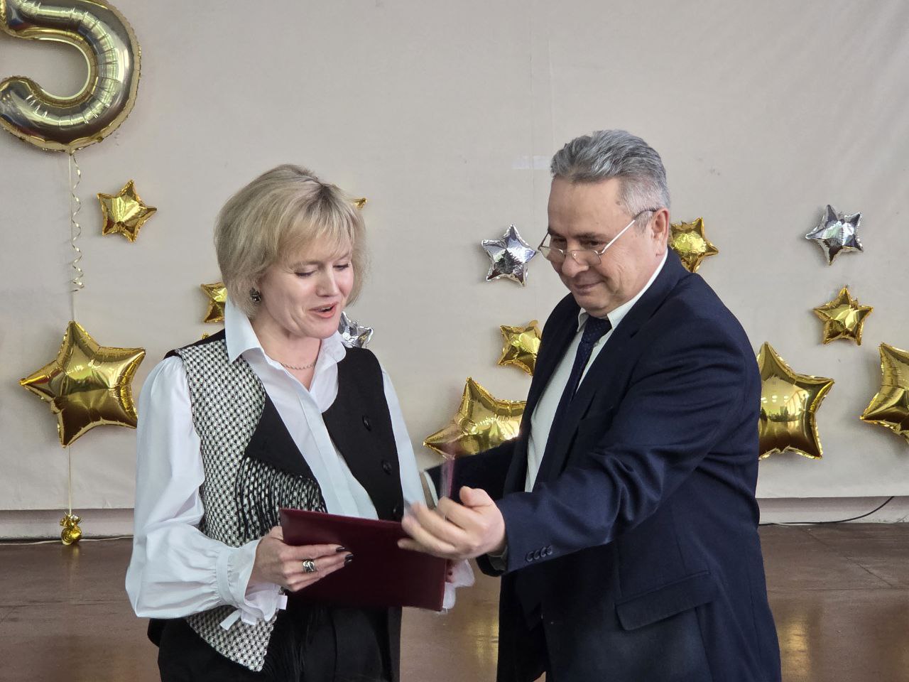 Сегодня поздравления с 55-летним юбилеем школы принимают педагоги и ученики СОШ №5. Поблагодарил учительский коллектив за то, что они сделали из школы одно из передовых образовательных учреждений.