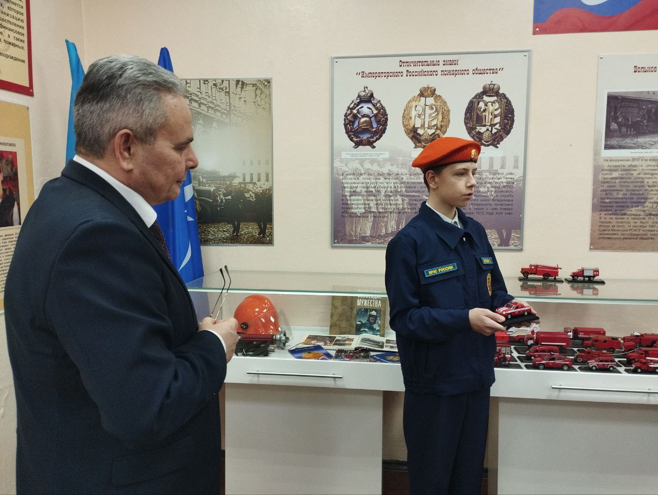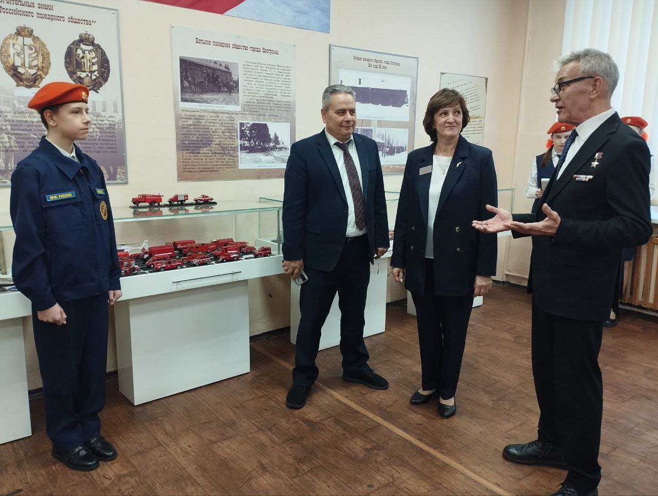 Вместе с Героем России Владимиром Легошиным побывали в 18-й школе, где создан кадетский класс пожарно-спасательного профиля. С ребятами почтили память выпускников учреждения, погибших в ходе специальной военной операции, посмертно награжденных орденами Мужества. Посетили музейную комнату, открытую в школе в прошлом году. Здесь собраны материалы об истории создания вольного спасательного общества Костромы, молодежного движения пожарных и спасателей. Кадеты презентовали нам коллекцию техники специального назначения. Все экспонаты в музейное пространство были безвозмездно переданы родителями школьников и региональным управлением МЧС.