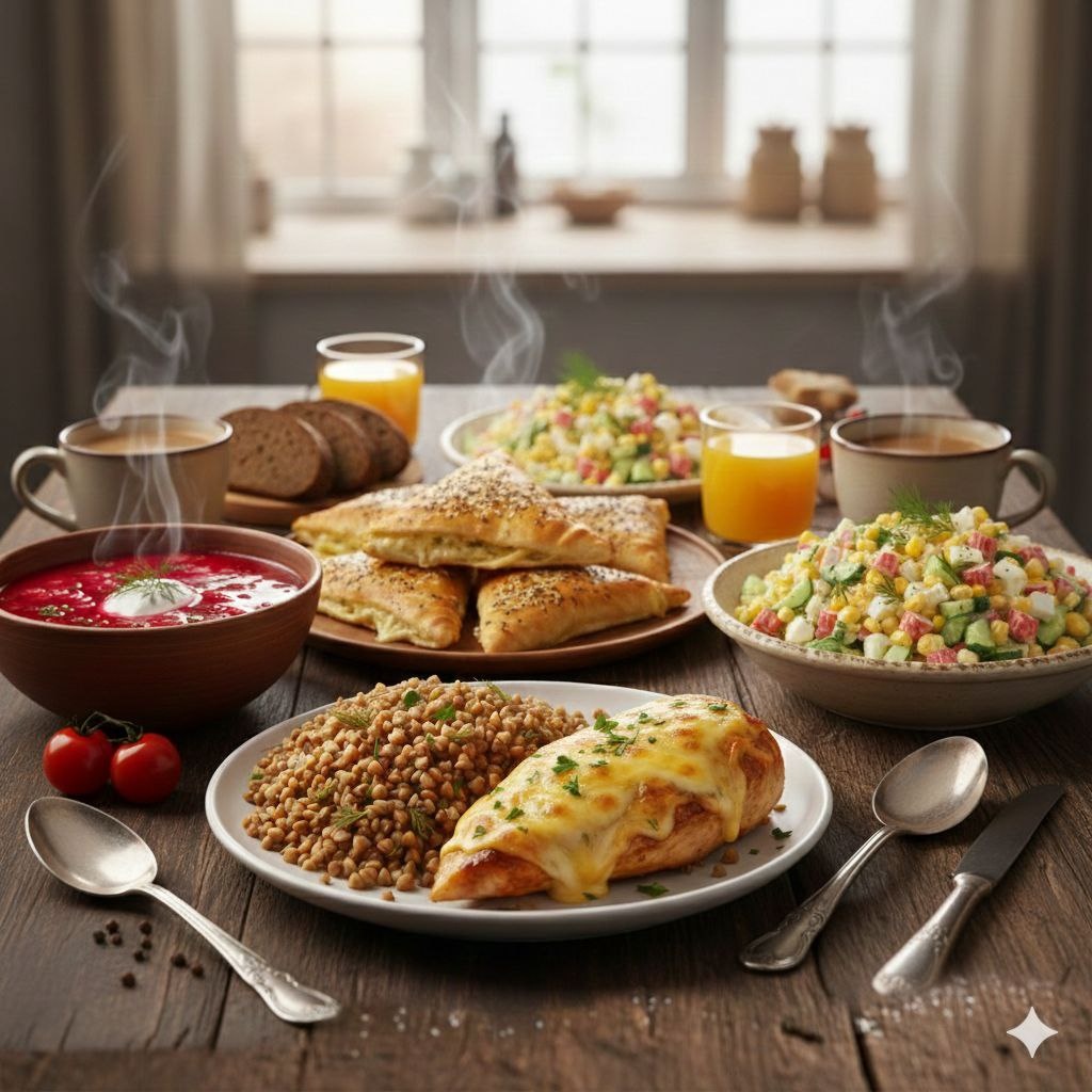 Сегодняшний день обещает быть тёплым и уютным благодаря нашему меню, которое не только насытит, но и создаст атмосферу домашнего комфорта.