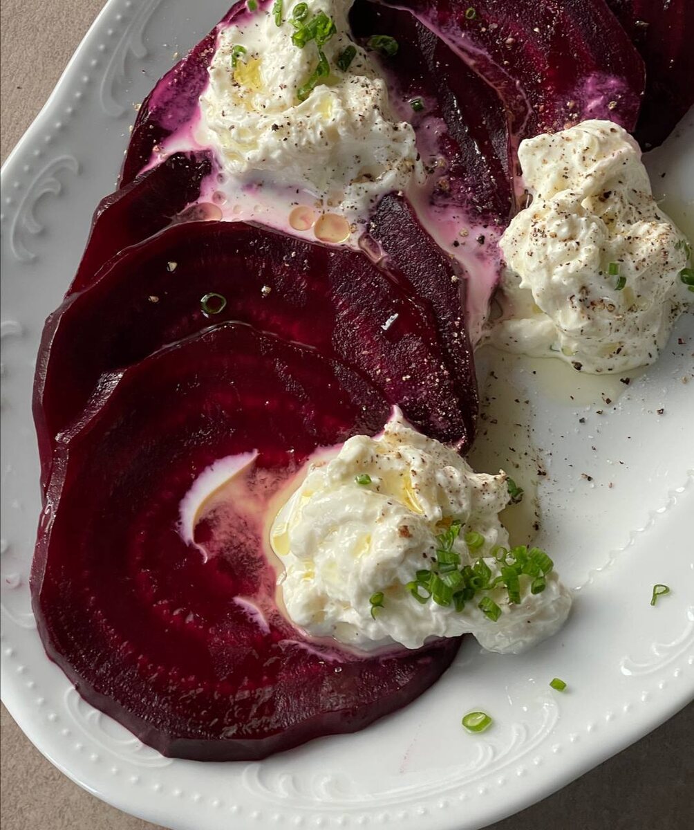 Разогреть духовку до 220 °C, выбрав режим верхнего и нижнего жаров.Свёклу тщательно промыть и обсушить, натерев её оливковым маслом. Хорошо посолить (не менее 0,5 ч. ложки) и поперчить (1/4 ч. ложки). Завернуть в фольгу блестящей стороной внутрь.Поместить свёклу в форму для запекания и отправить в духовку на минимум 1 час, а для крупной свёклы – до 1,5 часов. Проверить готовность зубочисткой — она должна легко входить в мякоть.После запекания оставить свёклу остывать, затем очистить от кожуры с помощью маленького ножа.Нарезать свёклу тонкими слайсами и выложить на тарелку. Сверху добавить сыр, мелко нарезанную зелень, немного оливкового масла и приправить солью и перцем по вкусу.Такое блюдо не только украсит стол, но и порадует гостей. Если свёкла часто оказывается выброшенной, стоит попробовать этот рецепт и поделиться им с друзьями!