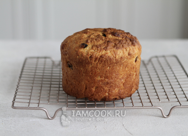 Выпекаем кулич 30 минут, проверяя готовность с помощью шпажки — она должна выходить сухой. Даем остыть прямо в форме, а затем можно украсить по желанию, хотя он и без оформления выглядит великолепно.