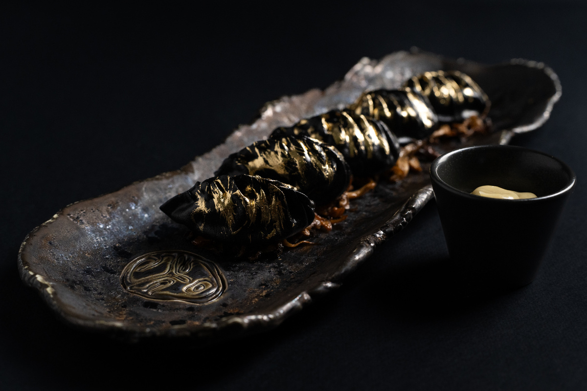 Тесто здесь мягкое и гладкое, когда его держишь под рукой — словно податливая ткань, которая держит форму без лишних усилий. Начинка из оленины, лука и папоротника остаётся сочной после пара, а тонкий слой теста сохраняет тепло внутри.