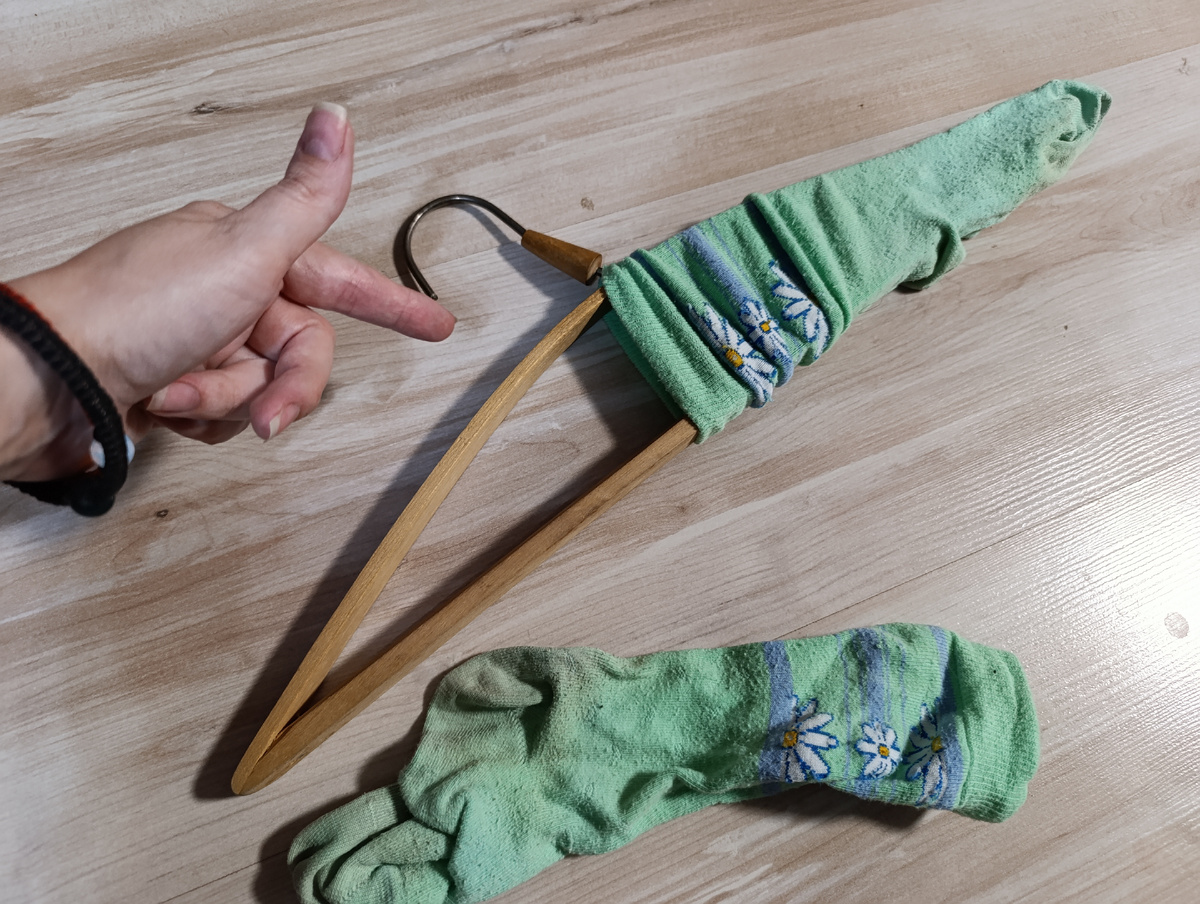 Никаких сложных манипуляций: капроновый носок натягивают на кончик обычной вешалки, слегка увлажняют водой с добавлением глицерина и по желанию — каплю эфирного масла. Глицерин образует тонкую невидимую пленку, которая задерживает пыль и помогает ей не оседать повторно.
