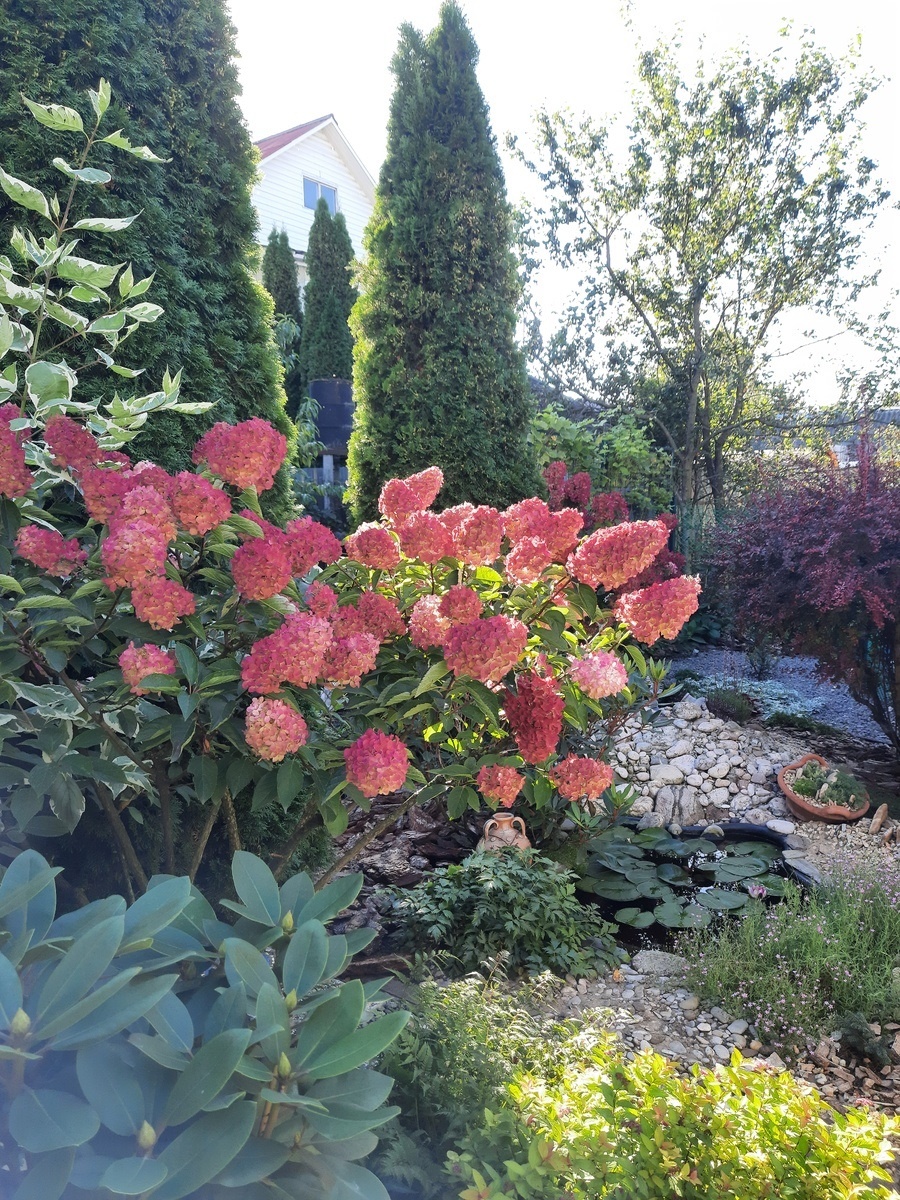 Метелки этой гортензии, которая теперь достигает в высоту 1,8 метра и ширину 2 метра, заметно уменьшились – раньше они были размером 25-30 см. Ольга спрашивает, можно ли коротко обрезать скелетные ветки, так как куст перестал давать нулевые побеги и даже не нуждался в нормировке. Судя по её словам, одной из веток она избавилась 3-4 года назад, чтобы не мешать проходу. Важно помнить, что подход к обрезке каждого куста уникален.