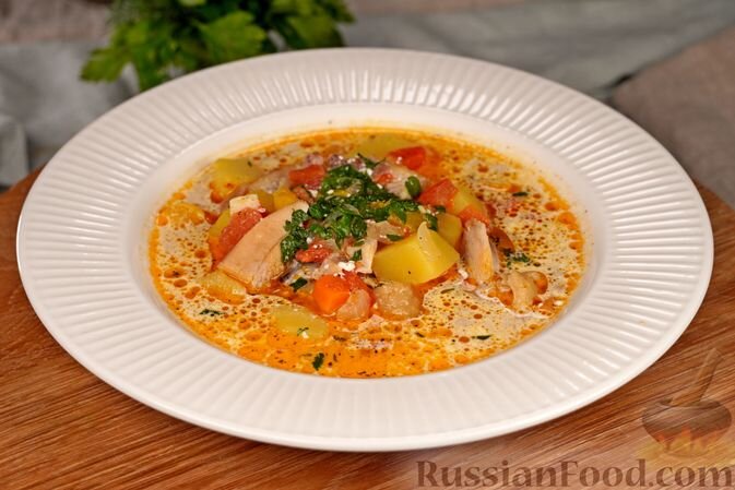 - Томатный суп с рисом и курицей: Основа блюда — вареное куриное филе и обжаренные овощи, дополненные томатной пастой и рисом, делают этот суп сытным и flavorful.