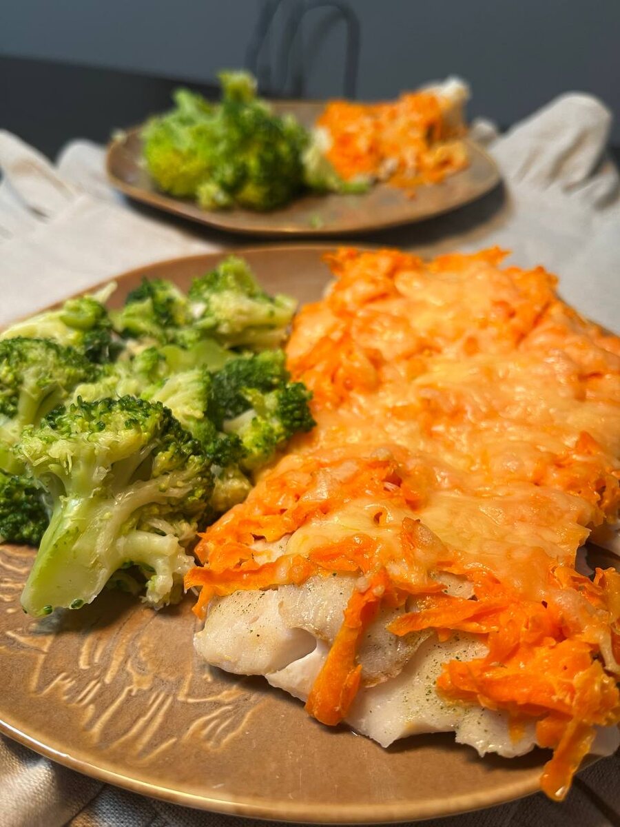 3. Выложить рыбу в форму для запекания, сверху распределить морковную смесь.