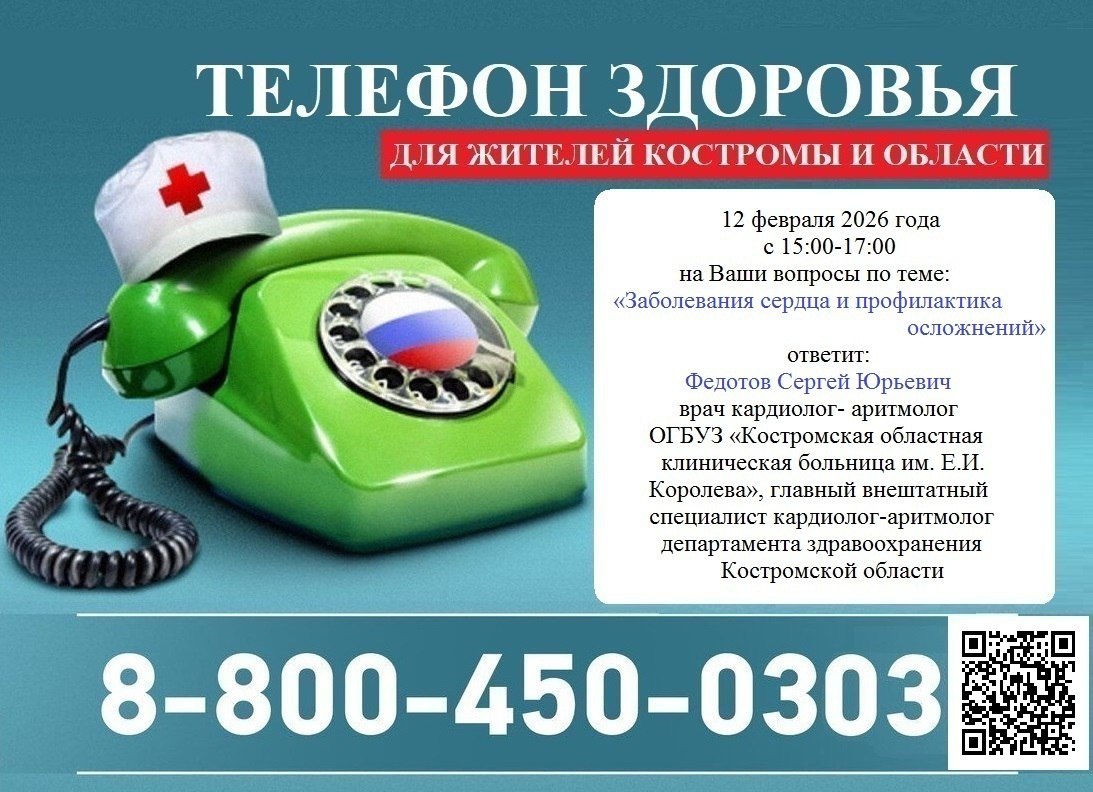 В ее рамках для жителей города и области 12 февраля будет организован Телефон Здоровья. Костромичи могут задать вопросы по теме Заболевания сердца и профилактика осложнений врачу кардиологу-аритмологу ОГБУЗ "Костромская областная клиническая больница имени Е.И. Королева" Сергею Федотову.Горячая линия будет работать с 15:00 до 17:00. Телефон для обращений: 8-800-450-03-03.
