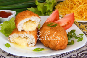 Сначала требуется подготовить сырно-масляную начинку. Сыр и мягкое сливочное масло тщательно пробивают до получения однородной массы — это можно сделать с помощью терки или блендера, что значительно упростит задачу.Далее, куриное филе с луком пропускают через мясорубку, чтобы получить нежный фарш. В него добавляют яйцо и соль, после чего все тщательно перемешивают.Обратите внимание, что куриный фарш может быть довольно липким, поэтому рекомендуется немного «отбить» его — достаточно положить мясо в пакет и аккуратно постучать по нему. Это сделает фарш более однородным и удобным для работы.Фарш делится на равные части, так же как и начинка. Далее формируются котлеты: небольшое количество фарша разминается в ладонях, в середину помещается начинка, после чего котлетка закрывается фаршем.Не забудьте запанировать котлеты: сначала обмакните их в взбитом яйце, затем обваляйте в панировочных сухарях.Жарить котлеты следует в разогретом растительном масле до золотистой корочки, затем отправить их в духовку, где они запекутся примерно 30 минут при температуре 180 градусов.Результат превзойдет все ожидания: хрустящая корочка, нежное мясо и расплавленный сыр в начинке сделают блюдо невозможным для игнорирования. Порадуйте своих близких этим необычным рецептом!