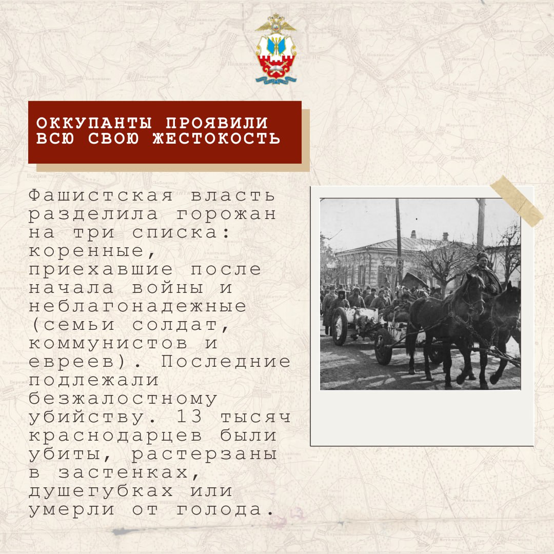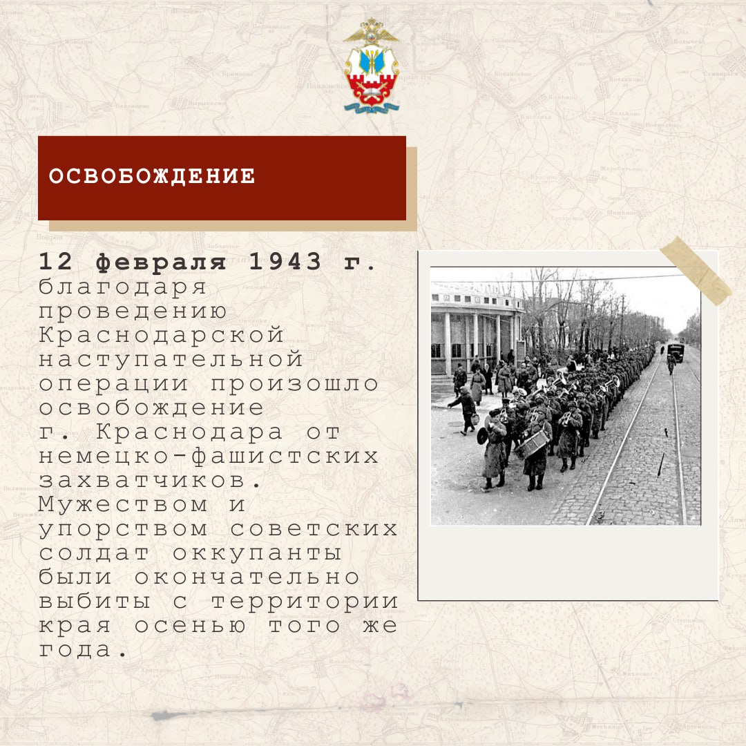 Сегодня отмечается 83-я годовщина со дня освобождения Краснодара от немецко-фашистских захватчиков. 186 дней оккупации, душегубки, тысячи замученных мирных жителей и долгожданное освобождение.