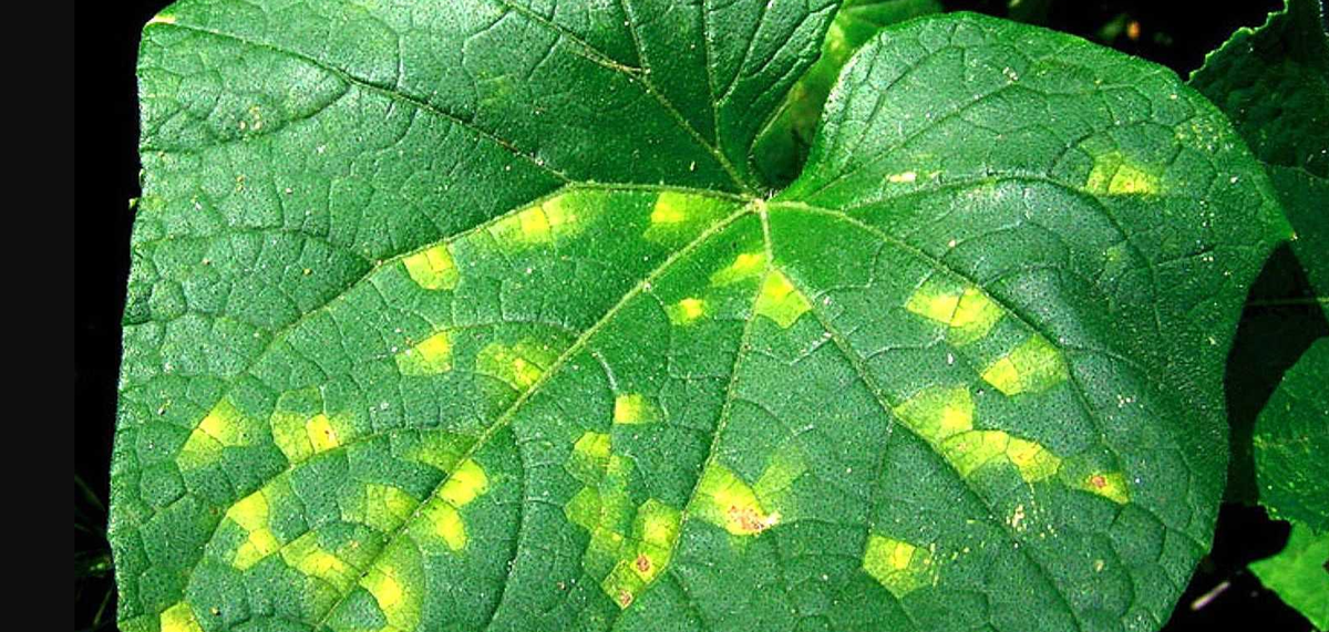 - На верхней стороне листа появляются желтые угловатые пятна.