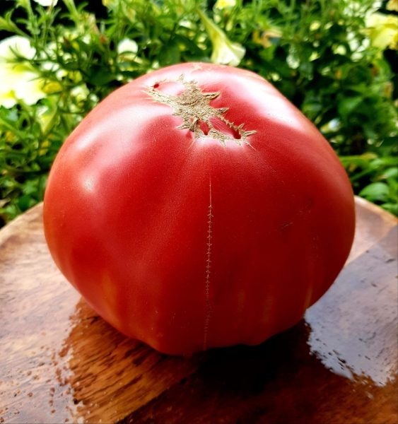 Кусты являются высокорослыми и требуют надежной подвязки из-за веса плодов. Они могут вырастать до двух метров и нуждаются в прищипывании верхушек, чтобы направить силы на созревание завязей. Плоды имеют плоскоокруглую форму, с выразительной ребристостью, которая является характерным признаком сорта.