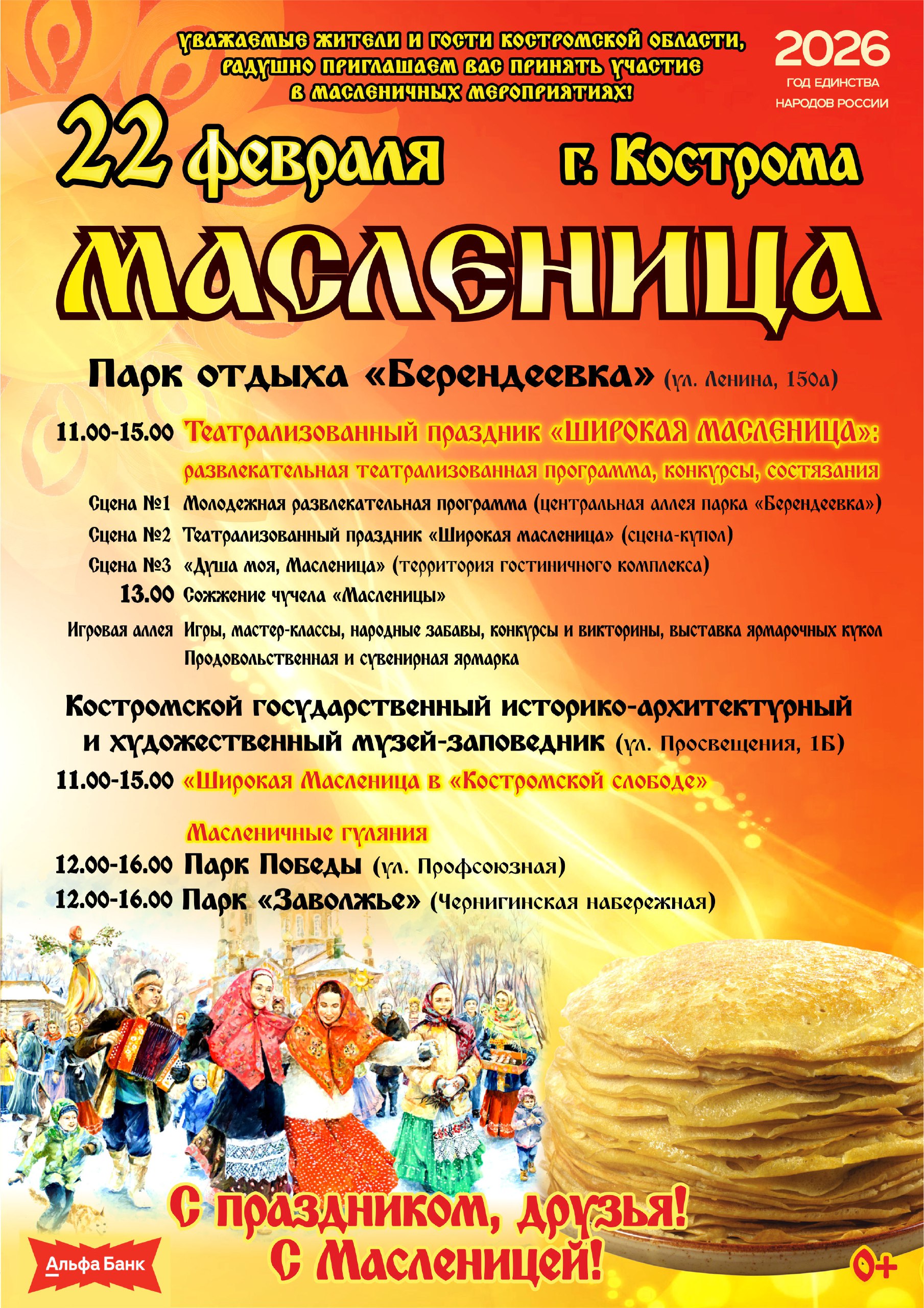 Городские парки приглашают костромичей на празднование Широкой масленицы. Народные гуляния пройдут 22 февраля. Основные мероприятия запланированы в парке «Берендеевка». Они начнутся в 11 часов.