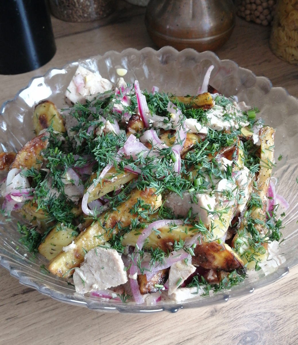 Сытный салат с запеченным картофелем: идеальный ужин для гурманов