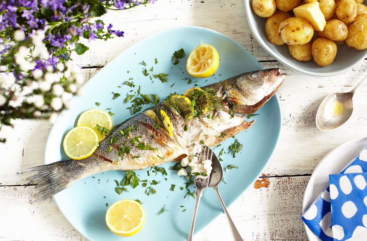 Подача на стол. Подавайте рыбу с дольками лимона и свежими травами. Идеальным гарниром станет отварной картофель.