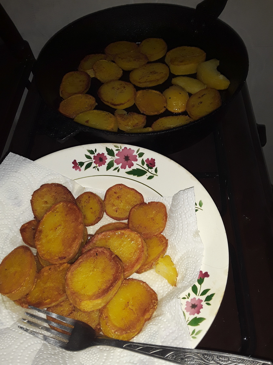 - Обжарьте на сковороде: выложите картофель в один слой на хорошо разогретую сковороду и обжаривайте до появления золотистой корочки. Не забудьте переворачивать каждое колечко, чтобы достичь равномерной прожарки.