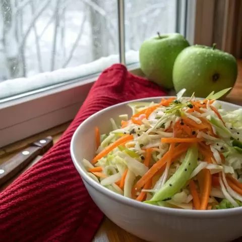 - Капустный эликсир здоровья: сочный салат с белокочанной капустой, натертой морковью и свежими яблоками. Заправьте оливковым маслом и лимонным соком — легкость и свежесть обеспечены!