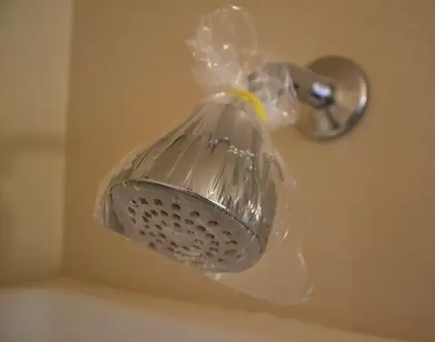 Блокировка насадки для душа — распространённая проблема, возникающая из-за минеральных отложений. Для эффективной очистки рекомендуется поместить насадку в пакет с уксусом на ночь. Утром обязательно промойте её горячей водой, чтобы как следует очистить от остатков известкового налета.
