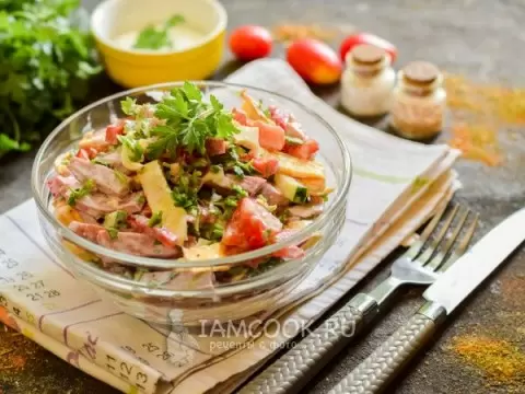 Этот сытный и аппетитный салат сочетает в себе простоту и богатый вкус. Его непременно оценят как любители, так и ценители гастрономических изысков.