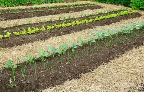 - Солома, особенно от злаков: Этот природный материал выполняет функции мульчи, создавая оптимальные условия для культуры. Солома помогает сохранить влагу в почве, предотвращает ее уплотнение и способствует размножению дождевых червей, которые улучшают структуру грунта.