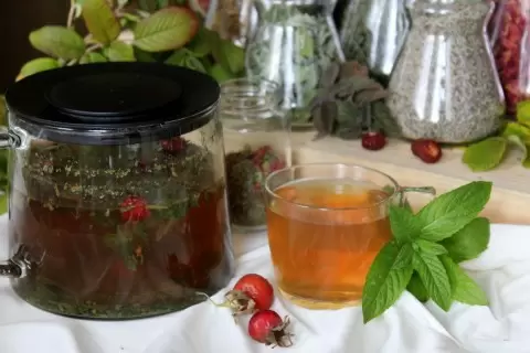 Идеальное сочетание трав готовится с учетом их свойств и защиты здоровья. Все компоненты сбираются в одну пропорцию, за исключением плодов шиповника, которые можно добавлять в чайник отдельно. Свежесобранные травы сушатся на воздухе, а готовая смесь хранится в стеклянных банках.