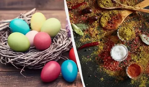 Куркума – это чудо-пряность, которая наделяет яйца насыщенным золотистым цветом. Для этого в воду добавляют несколько ложек куркумы, немного соли и уксуса, а затем варят яйца в течение 10–15 минут. Чем больше куркумы, тем ярче получится цвет, однако стоит помнить о ее способности красить руки!