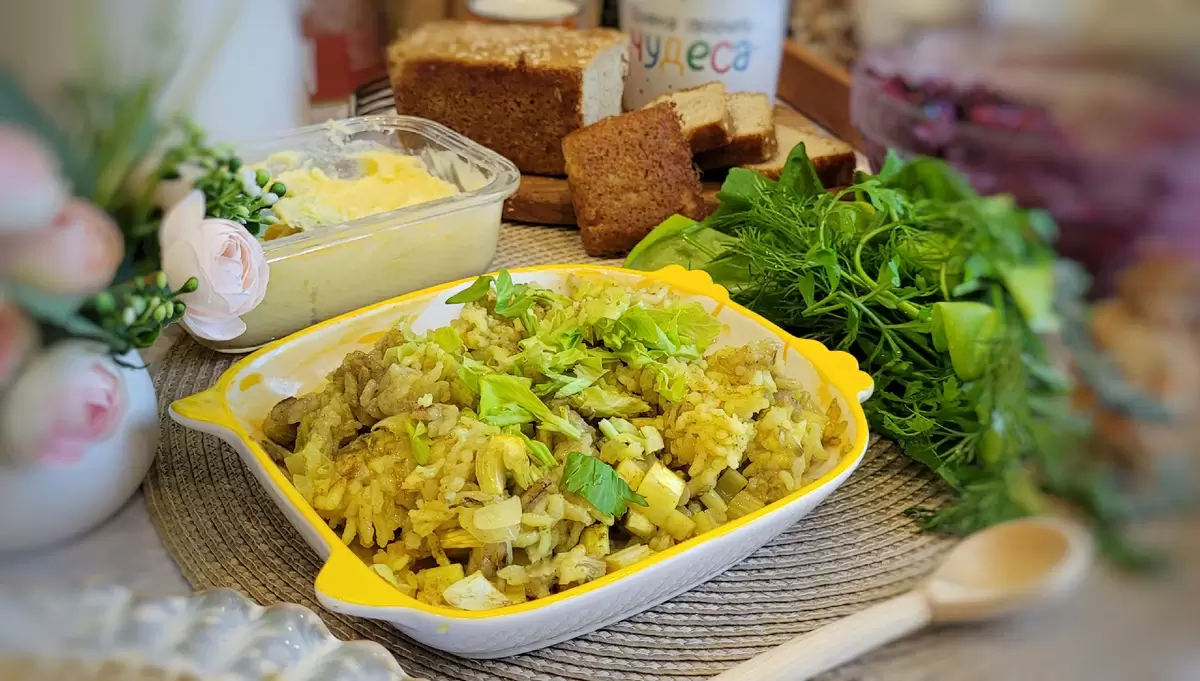 Вдохновляющий аромат восточных пряностей и свежий запах сельдерея наполняют кухню, как будто здесь развернулся настоящий рынок. Но не спешите, это не торговая галушка, а вегетарианский плов, который словно оживит ваши вкусовые рецепторы!