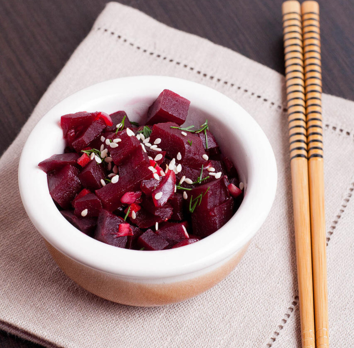 Морковь в азиатском стиле со свёклой и солёным огурцом