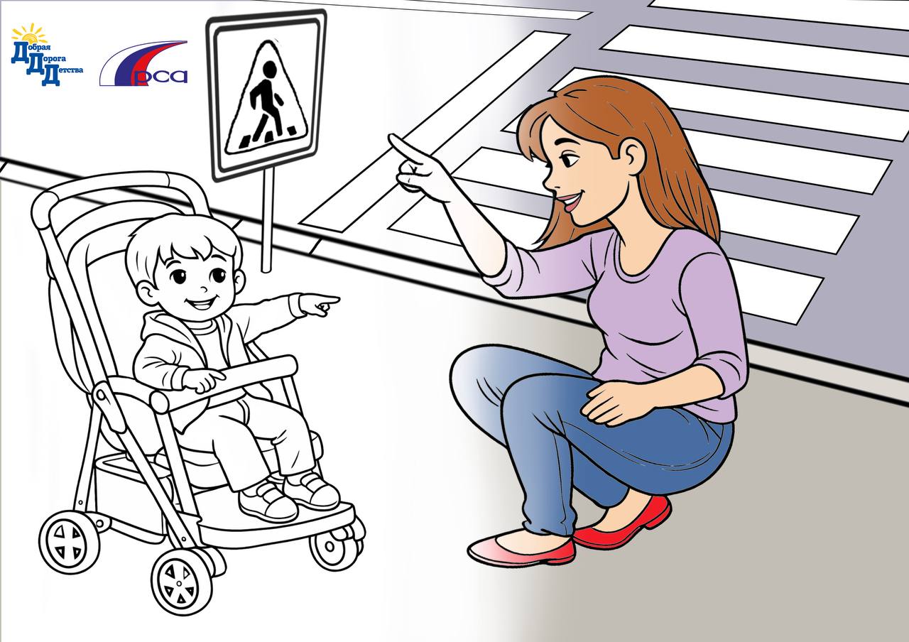Раскраска и совет от РСА «Мама может научить, как по улице ходить» из газеты Добрая Дорога Детства» №6 – 2026