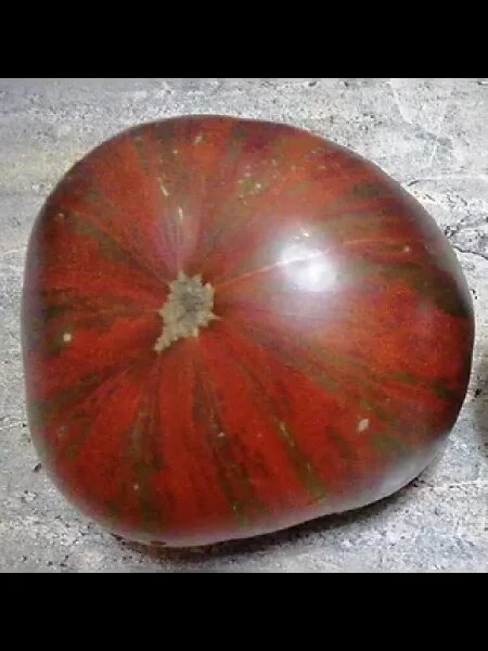 Плоскоокруглые, крупные плоды весом 200–350 г несут пурпурную кожу с зелёно-фиолетовыми лучами. Мякоть мясистая, сочная и с балансом сахаров и кислоты, что даёт интересное послевкусие. Полное раскрытие вкуса происходит на кусте, где окраска по-настоящему насыщается.